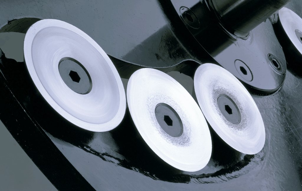 Utiliza cuchillas en forma de disco y solo el 33% del borde de la cuchilla toca la madera, lo que permite girarla dos veces antes de afilarla y alarga su vida útil.